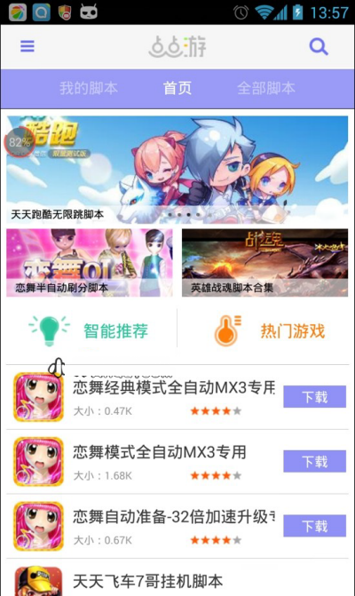 2、找到圖標點擊運行點點游,會直接進入所示的界面,里面涵蓋了非常多的各種游戲的腳本,大家可以先找自己想要的,然后點擊下載腳本。