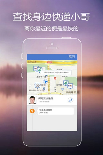 快遞員發(fā)現:根據您的個人定位,在地圖中顯示在您附近的快遞員,點擊頭像,可以一鍵下單;