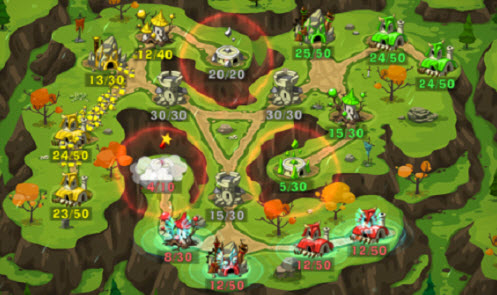 戰(zhàn)爭對抗安卓版是一款策略戰(zhàn)爭游戲。游戲畫面上,卡通風格十足,人物造型也有些自己的特色。游戲中你會和你的對手出生在地圖中的兩個點位,你們有各自的大本營,大本營的數字代表當前人口之值和最多人口值,大本營會不斷的生產軍隊,而你要做的就是出兵占領并消滅敵人的大本營。【戰(zhàn)爭對抗攻略】