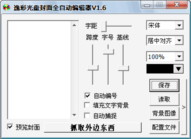 逸彩光盤封面全自動編輯器,該軟件采用全自動和手動兩種方式捕捉Nero等刻錄軟件中的文本,并根據(jù)文本自動填充到光盤封面中.該軟件與Nero7結(jié)合使用特別完美,特別適合于刻錄店