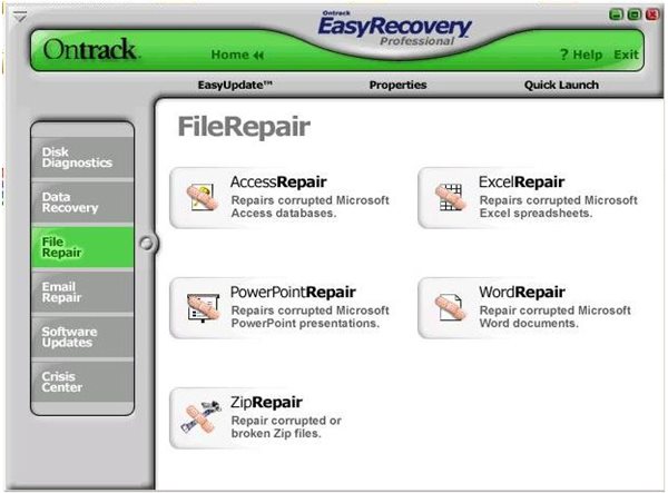 EasyRecovery Pro 6.0的功能非常多,除了修復(fù)數(shù)據(jù)外,它還能修復(fù)破損的Work、Excel、Access、PowerPoint、OutLook、ZIP壓縮包等多種文件。由于所有的操作跟前面我們提到的這兩種修復(fù)方式差不多,在此就不多說了。
