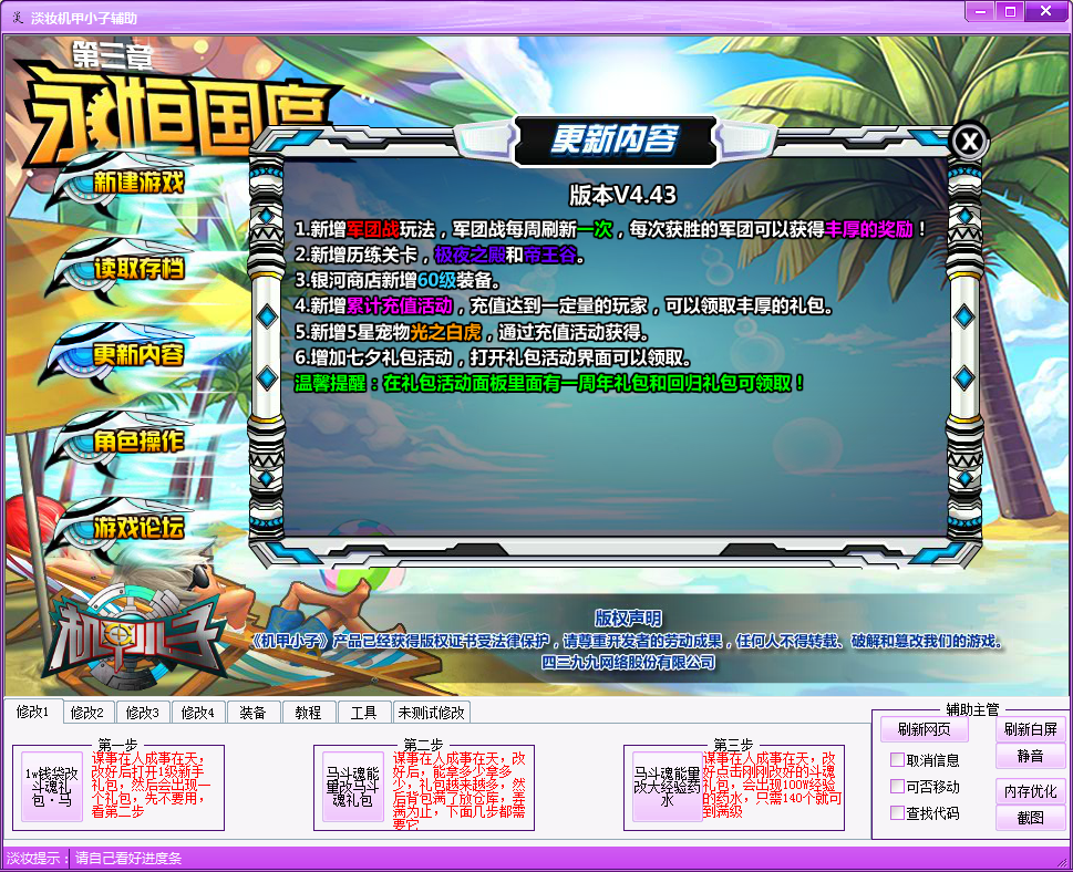 這款機(jī)甲小子輔助器是有淡妝首次制作,功能強(qiáng)大,可以多達(dá)近百個(gè)屬性修改,但是使用起來還有點(diǎn)難度,不過不用擔(dān)心,內(nèi)含詳細(xì)的教程。修改時(shí)還需配合ce的減速來修改。