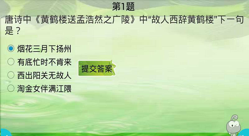 唐詩(shī)想必大家都知道最為流傳最廣影響最深的文化,你是否對(duì)唐詩(shī)的每一句都理解了,是否能夠熟練的朗讀背誦呢。《唐詩(shī)意境》中有兒童唐詩(shī)三百首,標(biāo)準(zhǔn)發(fā)音的女聲朗讀,無需流量,其中就包含了李白、杜甫、王維、劉長(zhǎng)卿、王昌齡等多首作品,可以讓孩子在背誦閱讀的同時(shí),理解每首詩(shī)所代表的意境。同時(shí)每首詩(shī)后面還有相關(guān)的問答,可以邊學(xué)邊練。