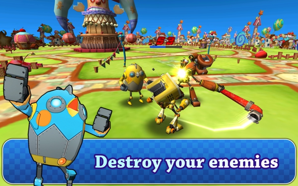 《機(jī)器人推塔 G.R.B》是一款格斗游戲。游戲中玩家需要選擇一位機(jī)器人,去摧毀敵人的防御塔,但是,在你推塔的時(shí)候,地方機(jī)器人會來阻撓你,你最好將其打趴下再推塔。游戲一共有6個(gè)不同的地圖,最多同時(shí)容納6位機(jī)器人一起戰(zhàn)斗。