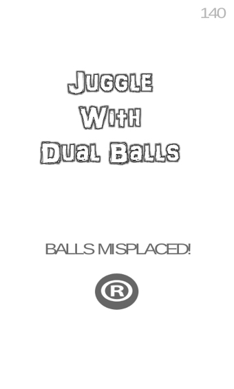 《黑白球 Dual Balls》是一款簡單而有趣的一鍵式操作的休閑游戲。游戲主打黑白風格,界面設計簡單。有黑球和白球不斷往下掉,你可以點擊下面的棒子切換棒子的顏色。一定要保證落下來的球要和棒子相同的顏色哦~不過,有一點值得小心的是,當你棒子轉變顏色后,背景也會轉換成相反的顏色,這樣就導致有些顏色的球看不到了哦~當你看見仿佛沒球掉下來的時候,一定要小心啦~