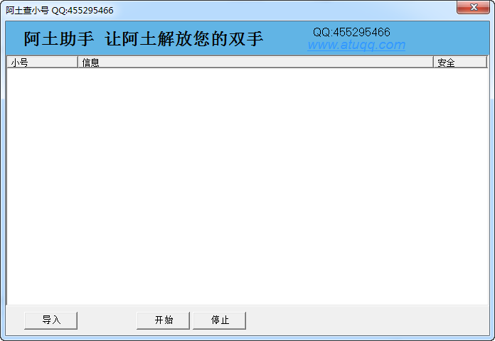 阿土淘寶查小號是一款可以批量查詢淘寶小號狀態(tài)的工具,讓你確認淘寶號每周每月號評是否安全,本軟件為免費軟件,不含任何插件,木馬,希望用阿土的助手軟件,解放大家的雙手。