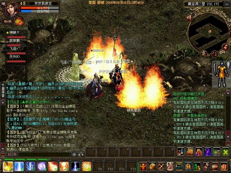 3.法師技能“驚雷震”技能:無視防御對自身半徑2格范圍內(nèi)的玩家造成固定150點(diǎn)傷害,并使其定身2秒,角色等級越高,技能成功率越高;