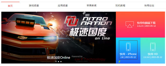 3.Iphone登陸iphone.kuaiyong.com點(diǎn)擊“快用移動端(iphone/ipad)兼容”,即可直接在設(shè)備上下載安裝移動端。