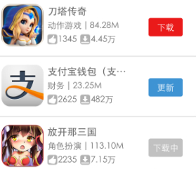 下載中列表會顯示正在下載的應(yīng)用,在這里您可以隨時開始和暫停應(yīng)用的下載,您還可以刪除您不想要的應(yīng)用