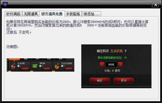 1、秒升滿級:進第1關,要簡單的,修改成功后,去打1個怪,看看有沒有升級,然后退出關卡,還原,保存。2、銀幣技能石頭:按下修改前,請檢查您現(xiàn)在擁有的硬幣加上重置返回的硬幣會不會超過 1.3億,如果超過封號。請在重置后點確定前還原,否則需等待1—3分鐘。