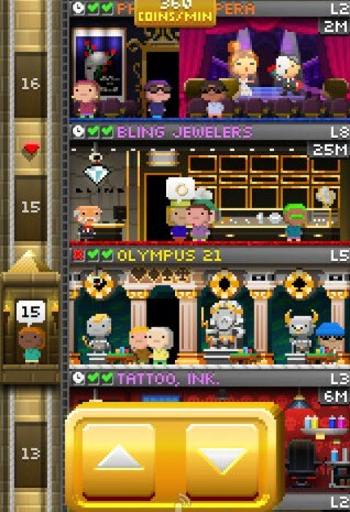 《小小摩天塔:維加斯》是三年前大熱的模擬經(jīng)營(yíng)游戲《小小摩天塔》的續(xù)作,不管是畫(huà)面還是玩法都延續(xù)了前作的風(fēng)格。首先不管造賭場(chǎng)還是開(kāi)超市,都離不開(kāi)一座小小摩天塔,先打穩(wěn)地基再點(diǎn)擊建造按鈕,一層一層往上堆砌就可以了。當(dāng)然,空有大樓是無(wú)濟(jì)于事的,還得擁有足夠的員工。玩家可以先讓員工足夠的樓層開(kāi)張營(yíng)業(yè),賺錢以后再繼續(xù)慢慢往上蓋樓。