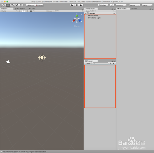 打開Mac 機(jī)上的 Unity,新建一個空工程,然后Unity界面如下圖