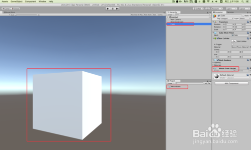 打開 Mac Unity ,新建一個物體(可省略),并且新建一個腳本,可添加到物體上,如下圖