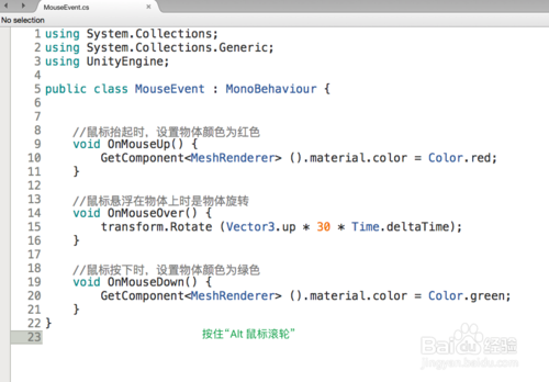 接著,打開的MonoDevelop腳本顯示默認(rèn)是代碼不可折疊的,如下圖