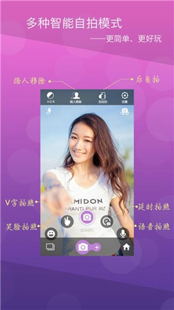 一、智能自拍:個(gè)手勢(shì)、一個(gè)微笑均可代替快門按鈕,讓自拍更簡(jiǎn)單、更好玩二、聲控拍照:解放手指,一個(gè)茄子或拍照指令即可自動(dòng)拍照后攝像頭自拍