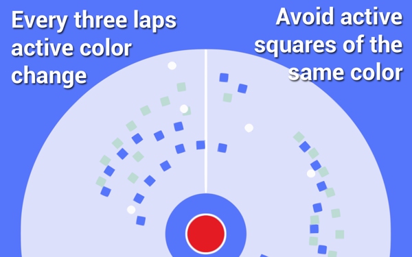 《紅綠藍(lán) Red Green Blue》是一款非常有趣耐玩有挑戰(zhàn)性簡(jiǎn)潔休閑的小游戲。背景音樂(lè)平靜舒緩。你的目標(biāo)就是盡可能在生存得久。首先玩家扮演一個(gè)小方塊,方塊會(huì)向中間靠攏。玩家通過(guò)點(diǎn)擊讓方塊遠(yuǎn)離中間,同時(shí)身后會(huì)留下軌跡。每留下一個(gè)小方塊就會(huì)得一分。當(dāng)然,如同貪吃蛇,你不能碰到你自己的軌跡。吃到飛揚(yáng)的小白球會(huì)消除附近的軌跡。來(lái)看看你能生存多久吧~