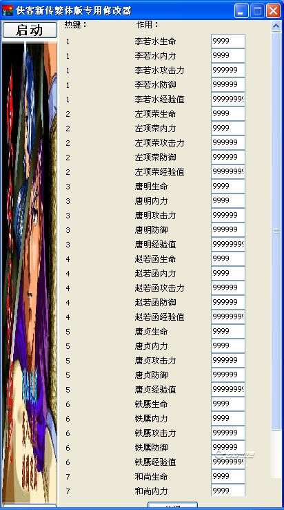 修改李若水,左項(xiàng)榮,唐明,趙若涵,唐貞,鐵鷹,和尚的攻擊力,防御力,生命,內(nèi)力,經(jīng)驗(yàn)