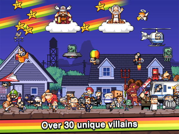 游戲的音樂節(jié)奏比較輕快,聽起來讓人神清氣爽。游戲當(dāng)中準(zhǔn)備了多種人物供玩家選擇,從雷神到上帝,每一個(gè)人物都有一個(gè)專屬的技能,利用專屬技能可以更快的清除屏幕中的惡霸們。游戲的操作方式并不復(fù)雜,采用的是典型的觸屏手勢(shì)方式,不過由于每個(gè)人的技能不同,釋放的操作在細(xì)節(jié)上也會(huì)稍有不同。隨著游戲的進(jìn)展,玩家可以解鎖人物,當(dāng)解鎖后會(huì)有詳細(xì)介紹人物的專屬技能以及操作方式,玩家并不用擔(dān)心面對(duì)新人物會(huì)手足無措。