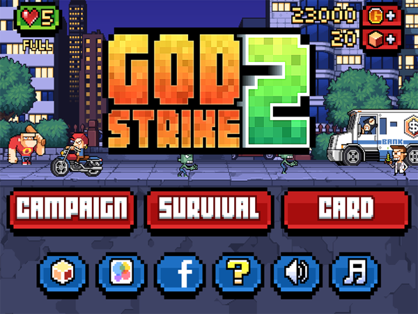 《上帝的懲罰2God Strike 2》是由Magic Cube公司制作并發(fā)行的,游戲基本上延續(xù)了前作的風(fēng)格,街機(jī)風(fēng)格的2D畫面,其中還帶有一些像素元素,閃電效果也是非??鋸?,也是為了更加爽快的懲罰那些壞蛋。