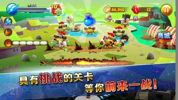 手指點(diǎn)擊目標(biāo)區(qū)域,將會(huì)射出弓箭。技能施放:手指在目標(biāo)區(qū)域滑動(dòng),就可以施放技能,但前提是要能量值——法力集滿才能放技能,在擊殺怪物之后會(huì)獲得法力。