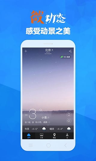 支持2100多個(gè)國(guó)內(nèi)城市,支持300多個(gè)國(guó)外重要城市絢麗的天氣圖片。清爽的界面展示,支持在線(xiàn)背景下載、背景圖片。支持天氣變化的提醒功能,為你提供更方便的溫馨關(guān)懷,享受生活,從最美天氣開(kāi)始!