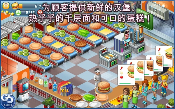 超級漢堡城市安卓版是 G5 開發(fā)的一款模擬經(jīng)營類游戲。準(zhǔn)備好建立你的漢堡王朝嗎?Stand O’ Food City,以我們已取得瘋狂成功的 Stand O’ Food 為基礎(chǔ)的免費(fèi)時(shí)間管理游戲,現(xiàn)在終于面世! 你的舊友尼吉、羅妮和克萊倫斯從 Tinseltown 鎮(zhèn)出發(fā),以尋找建立新餐館的完美地點(diǎn)。但邪惡的托格一如既往地盯著這個(gè)辛勤工作的團(tuán)隊(duì),妄圖摧毀她們的計(jì)劃。在這個(gè)融合了城市建設(shè)、戰(zhàn)略和時(shí)間管理的獨(dú)特游戲中,一步一步地拓展你的生意,一路提升你的計(jì)劃。建造七個(gè)提供不同招牌食物的咖啡館,這些招牌食物包括千層面、牛肉漢堡、魚肉漢堡、沙拉漢堡、雞肉漢堡、早餐和巧克力蛋糕。然后監(jiān)督升級,以實(shí)現(xiàn)利潤??最大化并提升客戶體驗(yàn)。