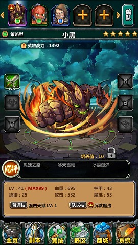 英雄強(qiáng)化和進(jìn)階強(qiáng)化系統(tǒng)上,《刀塔去哪兒》采用卡牌類游戲最經(jīng)典的提升方式,吞吃其他卡牌,也有對應(yīng)三種英雄類型的經(jīng)驗卡牌為升級提供大量經(jīng)驗值。