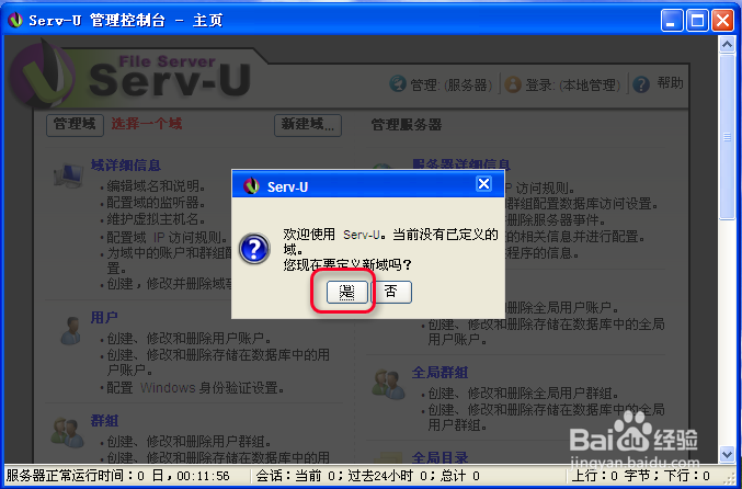 1. 運行“Serv-U”,在彈出一密碼框中輸入密碼登陸進去.