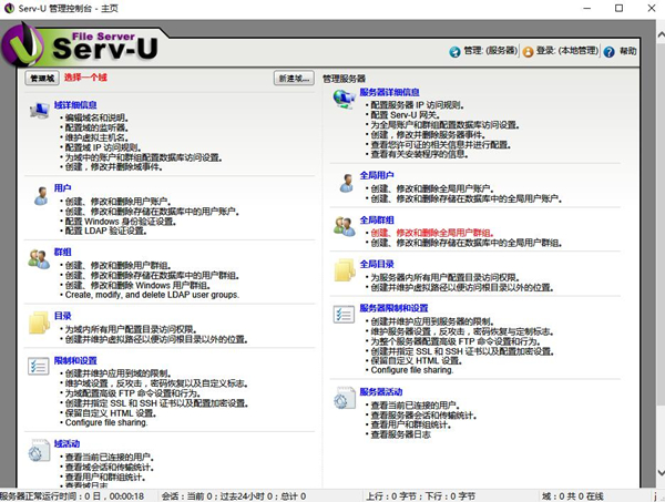Serv-U功能特色:1.符合windows 標準的用戶界面友好親切,易于掌握.