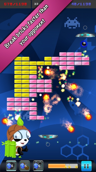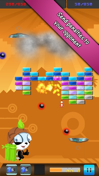 《打磚塊對(duì)戰(zhàn) Multi Breaker》是一款有趣休閑的打磚塊游戲。注意,注意,這不是一個(gè)人的游戲!這是一個(gè)對(duì)戰(zhàn)游戲。這里沒(méi)有死亡,只有從容不迫勇敢的擊敗對(duì)手。我們的目的就是獲取比對(duì)手更多的分?jǐn)?shù)。通過(guò)球的控制和道具的攻擊讓對(duì)手措手不及!在所有的磚塊消失后,你獲得的分?jǐn)?shù)和對(duì)手的分?jǐn)?shù)誰(shuí)更多呢?考驗(yàn)我們的時(shí)候到啦~