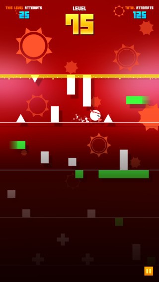 色彩斑斕的視覺沖擊與以往那些虐心游戲相比,本作在畫面上絕對稱得上華麗!進(jìn)入游戲的那一刻,小編就被游戲中鮮艷的色彩所吸引了,紅、黃、綠、藍(lán)幾種鮮明的色彩搭配各種形狀的打底背景,讓玩家沉浸在華麗的游戲畫面當(dāng)中無法自拔。虐心游戲在市面上的數(shù)量已經(jīng)不能用手指來計(jì)算了,