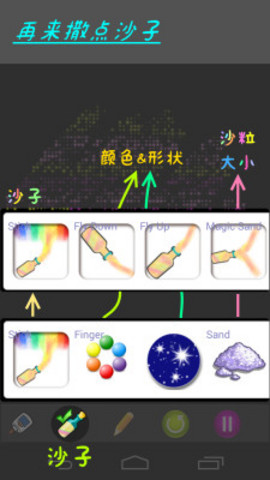 之后,使用效果各異的沙子筆來畫出漂亮的畫面,并且開始尖叫~;