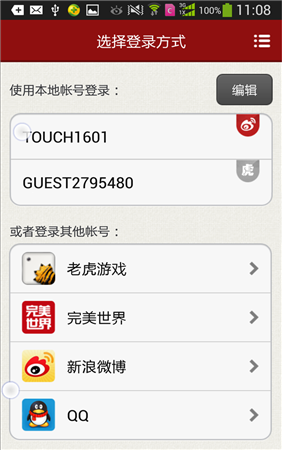 (4)沒有注冊(cè)賬號(hào)的,可以選擇使用老虎游戲、完美世界、新浪微博、QQ等賬號(hào)登陸。