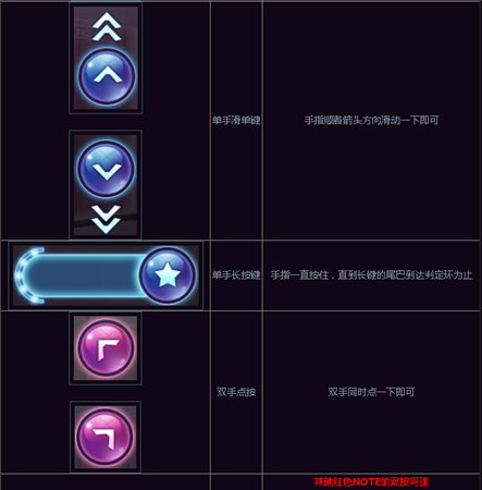 《TOUCH》移動(dòng)版核心玩法的操作簡單易懂,分為點(diǎn)、滑、長按三種。NOTE從屏幕中心出發(fā),向左右方向移動(dòng),當(dāng)NOTE與兩邊的判定環(huán)重合的時(shí)候,完成對(duì)應(yīng)的操作即可。
