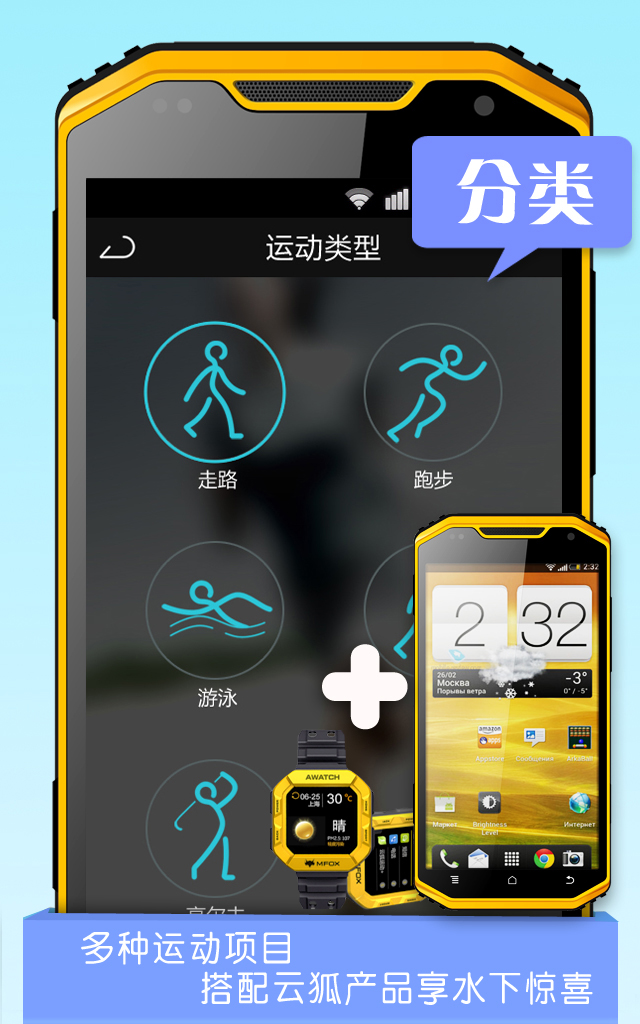 5、在這里你可以設置多種運動項目,如果搭配云狐手機的還可以分享水下運動的驚喜!