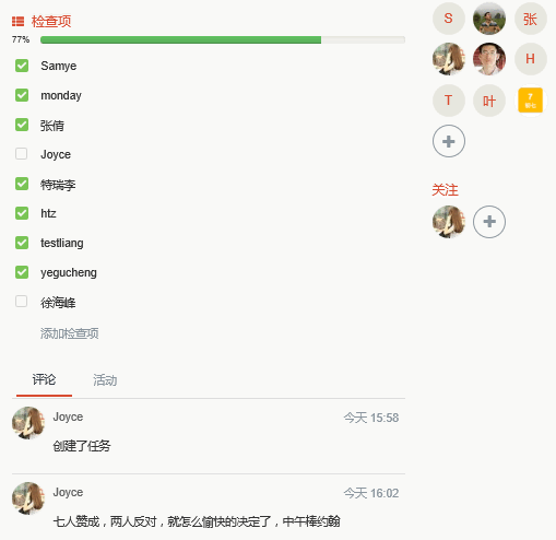 統(tǒng)計大家票數(shù),做出最終決策,勾選歸檔。ps:如果不放心,可以在任務(wù)詳情頁的【活動】中查看勾選狀況,以防有詐,哈哈。