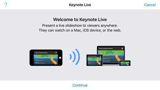 ?KeynoteLive可讓觀看者從Mac、iPad、iPhone和iCloud.com上同步觀看您演示的幻燈片放映