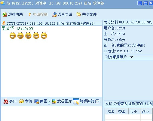支持文件/文件夾的傳送(支持大文件傳送[4G以上]),發(fā)送方和接收方都可查看傳送進(jìn)度功能.