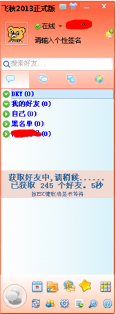 1、首先在本站下載飛秋軟件(PS:飛秋軟件是綠色免安裝,下了即用)2、下載解壓完成后,直接雙擊啟動(dòng),就可打開(kāi)飛秋,界面大家應(yīng)該非常熟悉,幾乎和以前的QQ一模一樣。