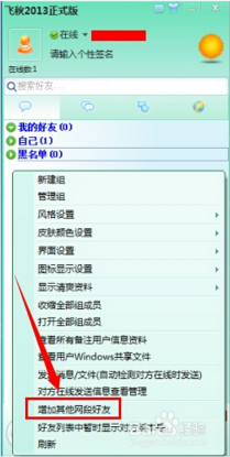 2、在好友列表,點(diǎn)擊右鍵,在下拉菜單中選擇“增加其他網(wǎng)段好友”。