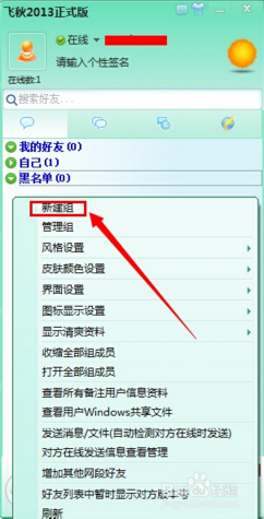6、在好友列表,點(diǎn)擊右鍵,在下拉菜單中選擇“新建組”,可以對(duì)好友進(jìn)行分組。