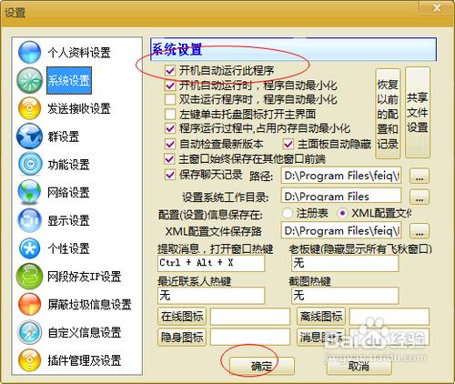 第六步:設(shè)置聊天記錄,工作目錄、快捷鍵等信息