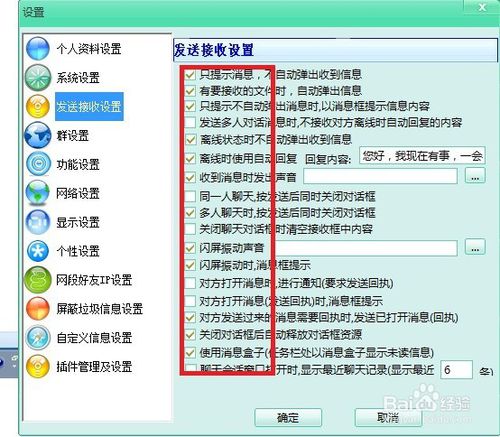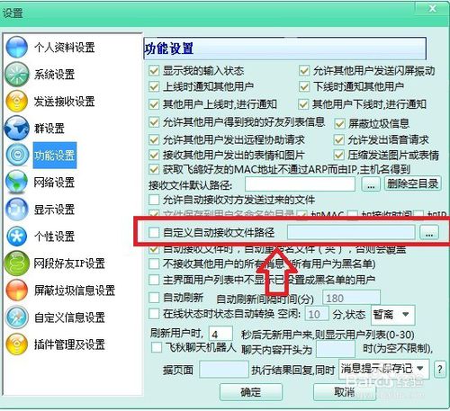 第七步:自動(dòng)保存文件,當(dāng)你不在電腦時(shí),朋友給你發(fā)的文件進(jìn)行自動(dòng)接收和保存設(shè)置,如圖所示;