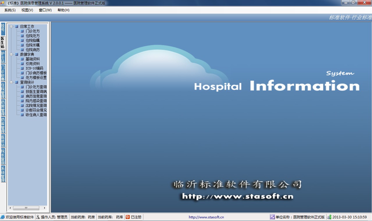 標(biāo)準(zhǔn)醫(yī)院管理軟件以病人為中心的開發(fā)思想,徹底解決了醫(yī)院手工作業(yè)“三長(zhǎng)一短”的問(wèn)題,全面實(shí)現(xiàn)醫(yī)院信息自動(dòng)化、無(wú)紙化。是由我公司,根據(jù)國(guó)家衛(wèi)生部醫(yī)院信息管理制度,并結(jié)合我國(guó)大中小型醫(yī)院的管理模式,為實(shí)現(xiàn)我國(guó)醫(yī)院信息化發(fā)展,而精心研發(fā)設(shè)計(jì)的一款專業(yè)的醫(yī)院信息化管理系統(tǒng)。適合于國(guó)內(nèi)的大中小型醫(yī)院,包括公立醫(yī)院、民營(yíng)醫(yī)院、職工醫(yī)院、婦幼保健、??漆t(yī)院、社區(qū)門診等醫(yī)療單位使用,可以幫助企業(yè)快速實(shí)現(xiàn)信息化管理的醫(yī)院管理軟件。軟件操作簡(jiǎn)單,功能全面,性價(jià)比高是醫(yī)院管理的首選。為更好的實(shí)現(xiàn)不同類型、不同規(guī)模醫(yī)院的有效管理。