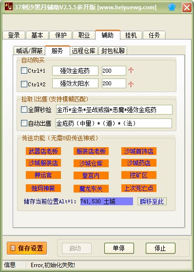 刺沙黑月輔助是為同名魔幻題材即時(shí)戰(zhàn)斗類網(wǎng)頁游戲提供的輔助修改工具,刺沙輔助的使用可以帶給玩家無限怒氣、無影攻擊、無影野蠻等多種功能,幫助玩家降低游戲難度,輕松游戲。