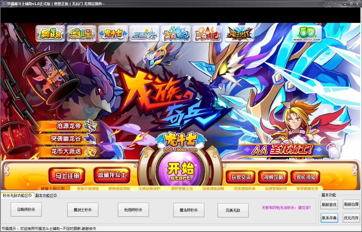 基本功能:刷新游戲、刷新白屏、優(yōu)化內(nèi)存。秒殺功能:召喚師秒殺、魔劍士秒殺、槍炮師秒殺、魔法師秒殺、完美無敵。