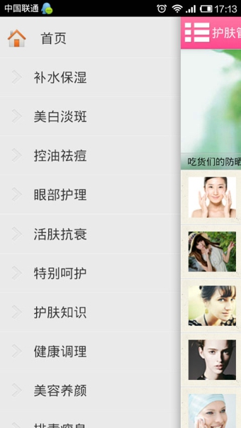 人性化智能分類,護(hù)膚知識全知道,涵蓋美白、黑頭、補(bǔ)水、祛痘、抗衰、眼部護(hù)理、營養(yǎng)美容等全方位專業(yè)美容攻略。