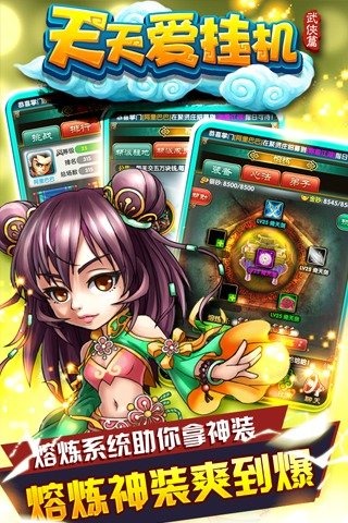 1、全新放置類武俠來襲 放置武俠新紀(jì)元2、熔煉系統(tǒng)助你拿神裝 熔爐神裝爽到爆