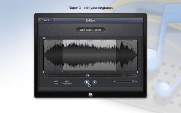 2、itoner在現(xiàn)場(chǎng)提供給自定義鈴聲到你的iPhone沒(méi)有鈴聲費(fèi)每一個(gè)簡(jiǎn)單的方法的第一個(gè)應(yīng)用程序。itoner 3把這個(gè)想法幾步,提供能夠快速、輕松地編輯你的鈴聲就在itoner!