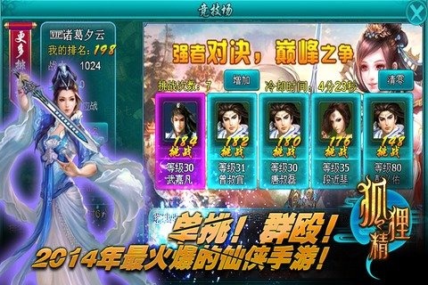 5、更多新奇PVE玩法,闖關(guān)、守塔…更多激情PVP大戰(zhàn),戰(zhàn)場、幫戰(zhàn)…時刻挑動你的神經(jīng)! 一切,盡在《狐貍精》,更多精彩內(nèi)容,等您親自體驗(yàn)!